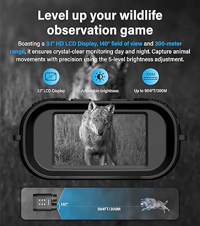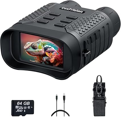 4K Night Vision Goggles – 3.1” HD Screen, 5X Digital Zoom, 7-Level IR Illuminator Binoculars with 64GB Memory Card and Detachable 4400mAh Battery – Day and Night Photo and Video Recording