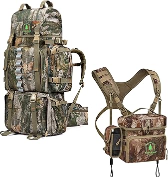 80L Hunting Backpack + Binocular Harness Chest Pack – L
