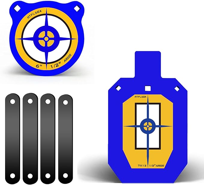 - Various Compatibility: This 1/2 inch AR500 target set is qualified for different training and shootings. It can easily withstand rifle calibers up to 338LAP and most handgun and shotgun rounds. Pistols should be used no closer than 10 yards and rifles 100 yards.