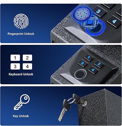 Secure your handgun with our biometric gun safe! Experience quick access, multiple entry options, and peace of mind. Shop now for safety at home!