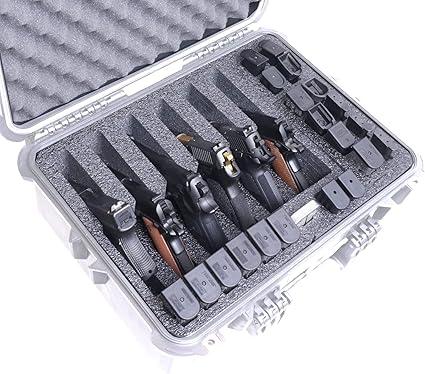 - The foam fits perfectly into a Apache 4800 Case by Harbor Freight, and holds 6 Semi Auto Pistols, (up to) 20 Pistol Magazines, Accessory Pocket