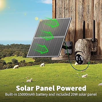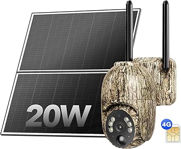 Cellular Trail Camera, 4G LTE Game Camera, 24/7 Recording, No Wi-Fi Needed Camera, 20W Solar Panel, 2K 360° View, Color Night Vision, Outdoor Wireless Waterproof