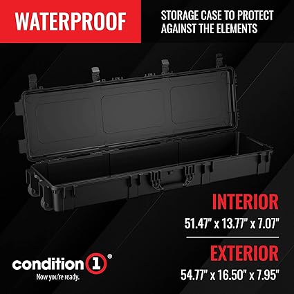 - GUN CASE WITH WHEELS – Our 55” Gun Case features multiple layers of foam, so it’s easy to create a custom-contoured fit. The perfect outdoor carry hard gun cases for storage or trips to the range with all-terrain rubber wheels.