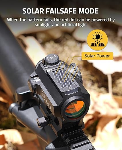 - [Dual-Power Red Dot ] – The CVLIFE solar red dot sight is solar or battery powered with automatic switching smart technology. Under most outdoor, daytime conditions, the solar red dot optics will operate on solar power only. In low light conditions, the solar red dot optics will automatically draw power from the battery to power the LEDs, providing a visible red dot in any environment.