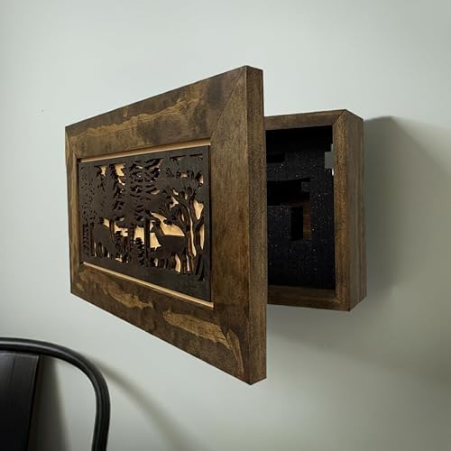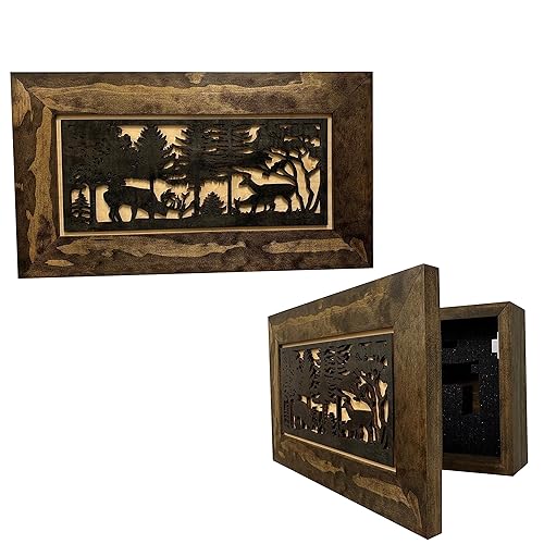 Decorative Deer Scene Wall-Mounted Secure Hidden Gun Cabinet – Concealed Gun Safe To Securely Store Your Gun & Home Self Defense Gear