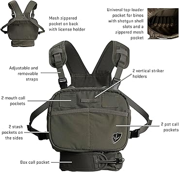 - STRATEGIC GEAR STORAGE – Multiple exterior pockets hold mouth calls, pot calls, strikers, and other essentials, keeping your hunting gear organized and within reach.