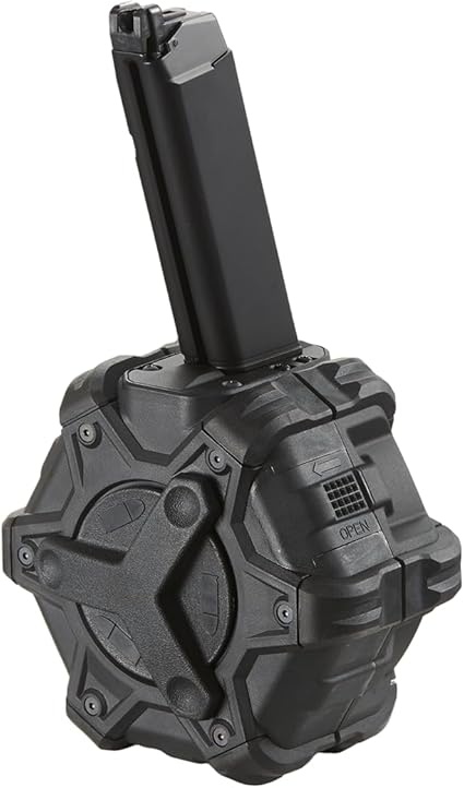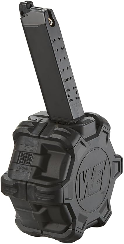 GoldenBall WE-Tech 350 Round Airsoft Drum Magazine for G-Series Gas Blowback Airsoft Pistols – (Black)