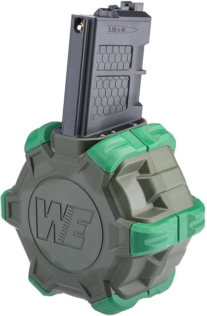Upgrade your game with the GoldenBall X WE-Tech Drum Airsoft Magazine for M4 gas blowback pistols in OD Green. Get yours now for unbeatable performance!