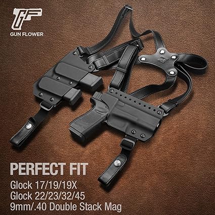 Handmade Shoulder Holster for Glock 19/17/19X/22/23/31/32/45, Full Grain Leather Strap with US Kydex Holster for Concealed Carry, Retention Adjustable, Universal Fit 9mm/.40 Double-Stack Mag