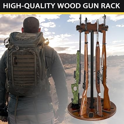 Organize and display your firearms with our rotating solid wood gun rack. Holds up to 12 guns—shop now for sturdy, stylish storage!
