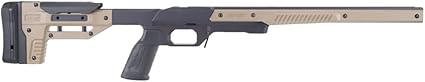 - Length-of-pull can be finely adjusted via a spacer system, while an adjustable cheek piece promotes proper alignment between the shooter’s eye and a mounted optic.