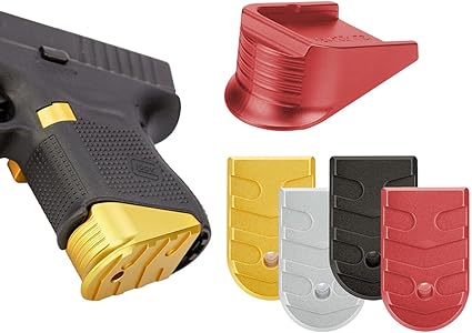 - Our Finger Extension Magazine Base Plate add durability, reliability and style, replacing the plastic OEM plates for a stronger aluminum plate while also adding an extra finger length for better control. The main feature of these plates is the additional textured length of the magazine plate. This lets another finger grip against the firearm for added purchase and control, which helps reduce muzzle flip and increases overall performance.