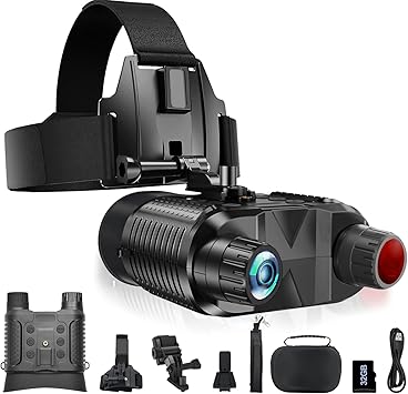 - 【What You Get】1 x Night Vision Binoculars, 1 x Head Strap, 1 x Helmet mount, 1 x Neck Strap, 1 x 32GB Card, 1 x Protective case, 1 x User Manual, 1 x USB Cable. if you have any questions, please don’t hesitate to contact our 24-hour online customer care service.