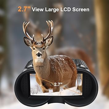 - 【Easy to use for Beginners】This night vision goggles for hunting with 2.7″ LCD super clear screen and manual focus function, is easy to focus, you just rotate the focus know clockwise, you will get a clear image. Durable and Reliable with IP54 Protection.