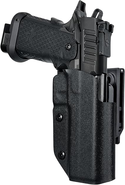 - Outside the Waist Quick Release IDPA Holster crafted from top-of-the-line .08” Kydex for unmatched durability.