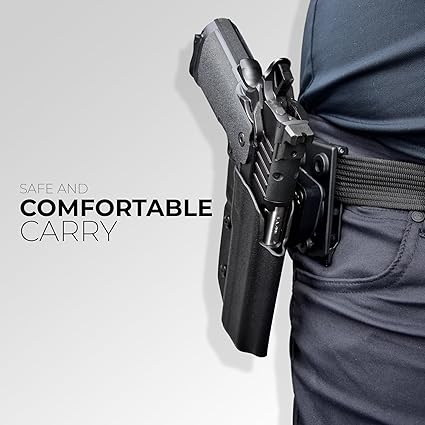 - Comfortable and secure IDPA attachment accommodating belts up to 2 1/4” wide, ensuring a snug fit.