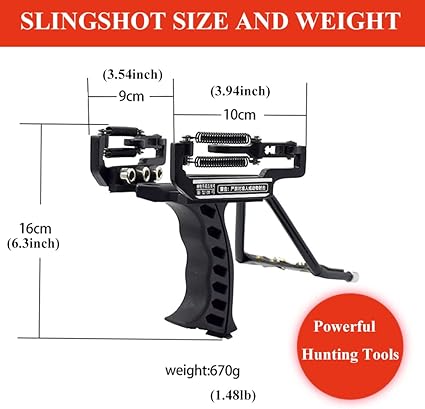 - Powerful hunting tool: The Pro Slingshot is a well-made slingshot with an arm brace to take the pressure off your wrist. The double spring design provides more power and faster firing.