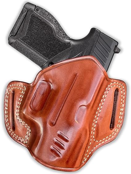 Premium The Ultimate Leather Pancake OWB Belt Holster Open Top Fits Taurus GX4 9mm Micro Compact 3.06” Barrel, Right Hand Draw, Brown Color #1621#