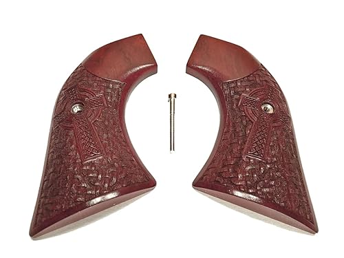 -Rosewood Celtic Cross Ruger Vaquero/Blackhawk/Wrangler Grips Checkered Engraved Textured