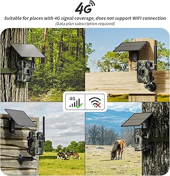 - 【Ideal for Places without WiFi and Electricity】Seeking a trail camera cellular without Wi-Fi or electric constraints? the SEHMUA 4G LTE Solar trail Camera is for you.This cellular trail cameras functions in areas with 4G LTE coverage. Say goodbye to concerns about Wi-Fi or power in a barn, farm, ranch, construction site, vacation home, warehouse or RV. (Note: Wi-Fi connection is not supported).