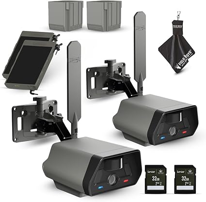 - Includes Two Tactacam Defend Cellular Security Cameras, Two Defend Solar Panels, Two Defend Rechargeable Batteries, Two Lexar 32GB SD Cards, and Field Boys Microfiber Cleaning Cloth by Trail Cams Galore, a Trademarked Brand.