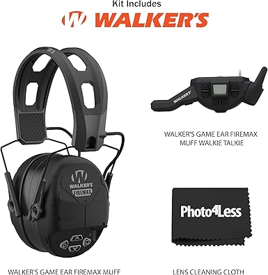 Walker’s Rechargeable Lightweight Range Electronic Slim Firemax Digital Muff Earmuffs Bundle FireMax Muff Walkie Talkie