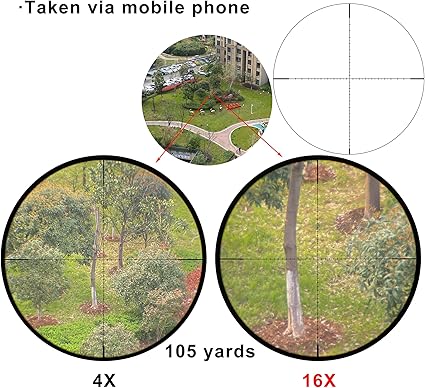 - Main Parameters – Offers parallax adjustment down to 15 yards, 45 MOA of elevation/windage travel, 96 mm long eye relief, crosshair reticle, wide field of view 27.3 to 6.8 feet (@100yds), and 1/10 MIL precision turret adjustment